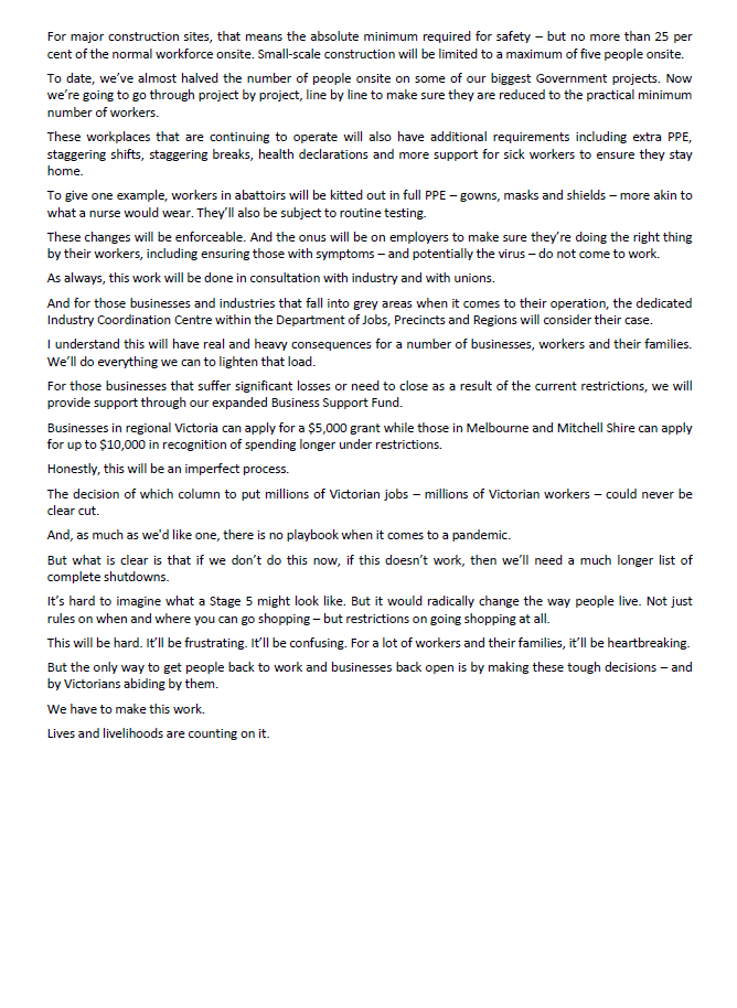 The Minister’s key points coming out of the call with myself were: